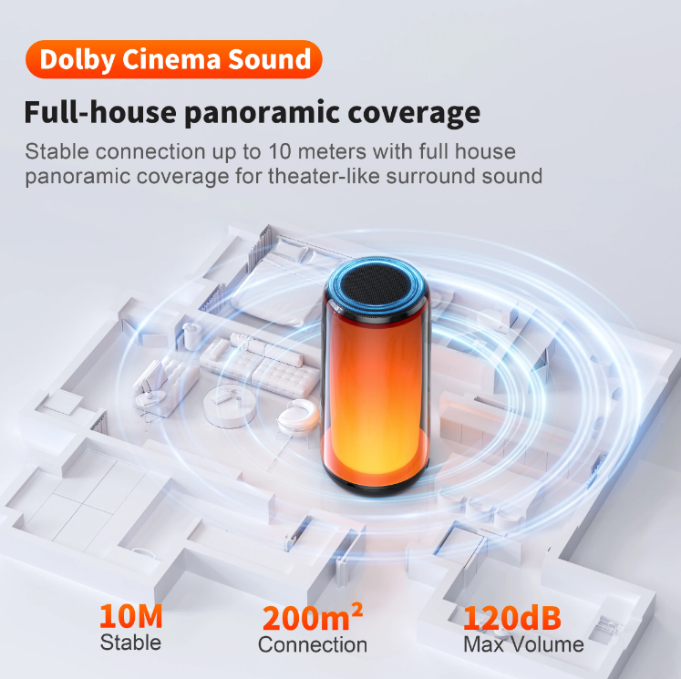 Wireless Speaker Outdoor Subwoofer With 360 Led Flashing Colorful Metal Bass Speaker